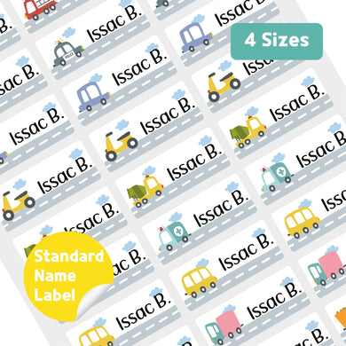 Standard Waterproof Name Label Stickers - Vehicle on the Road