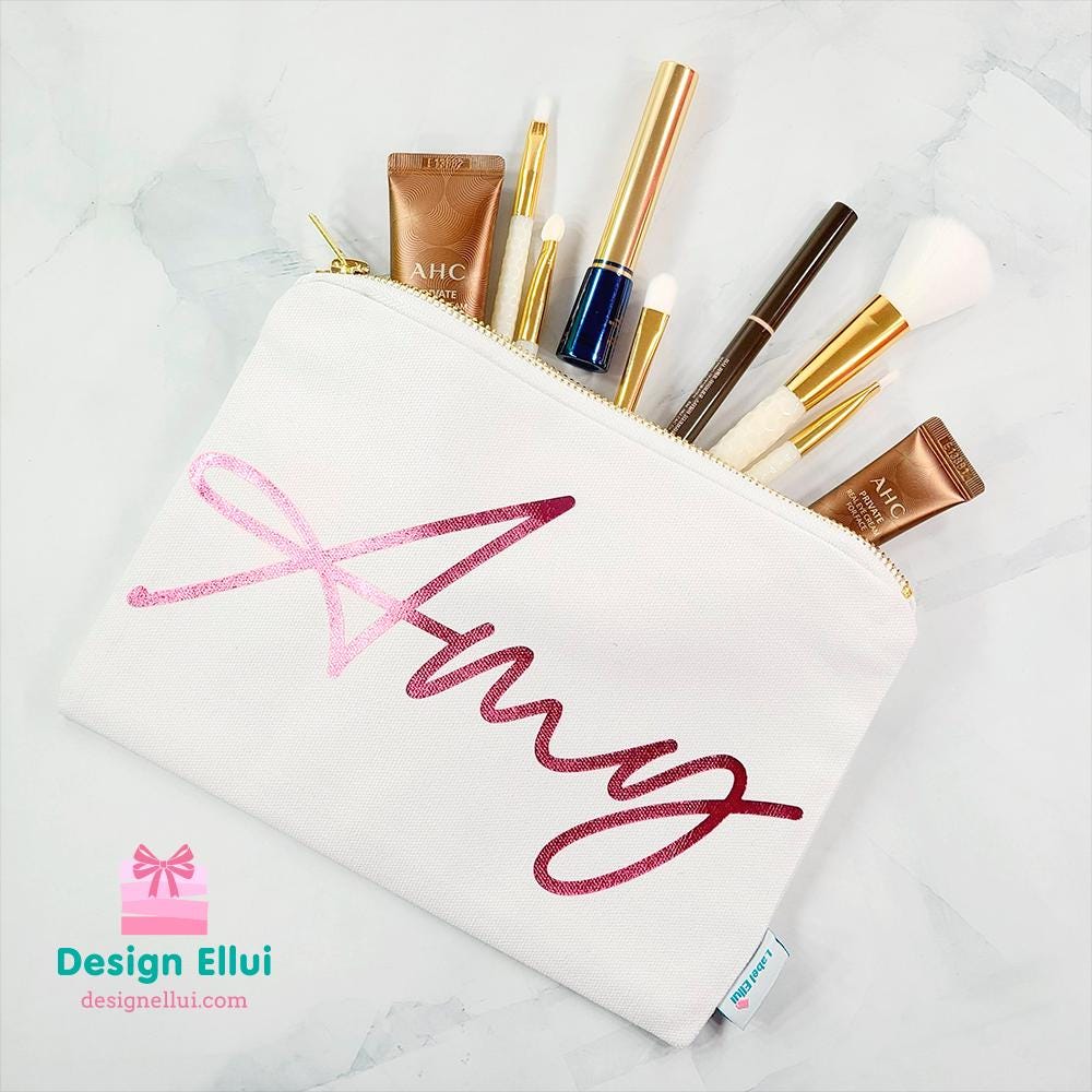 • Eye-Catching Personalization – Add your name or message in gorgeous foil or sparkling glitter font, beautifully printed on a stylish cotton canvas zipper pouch.