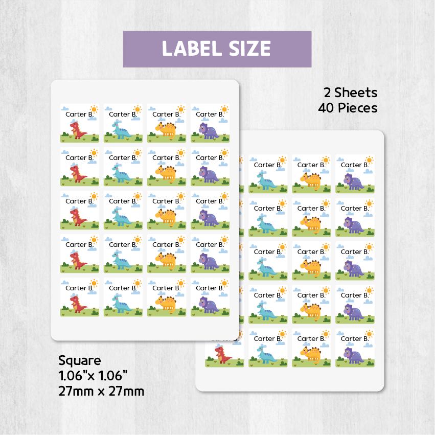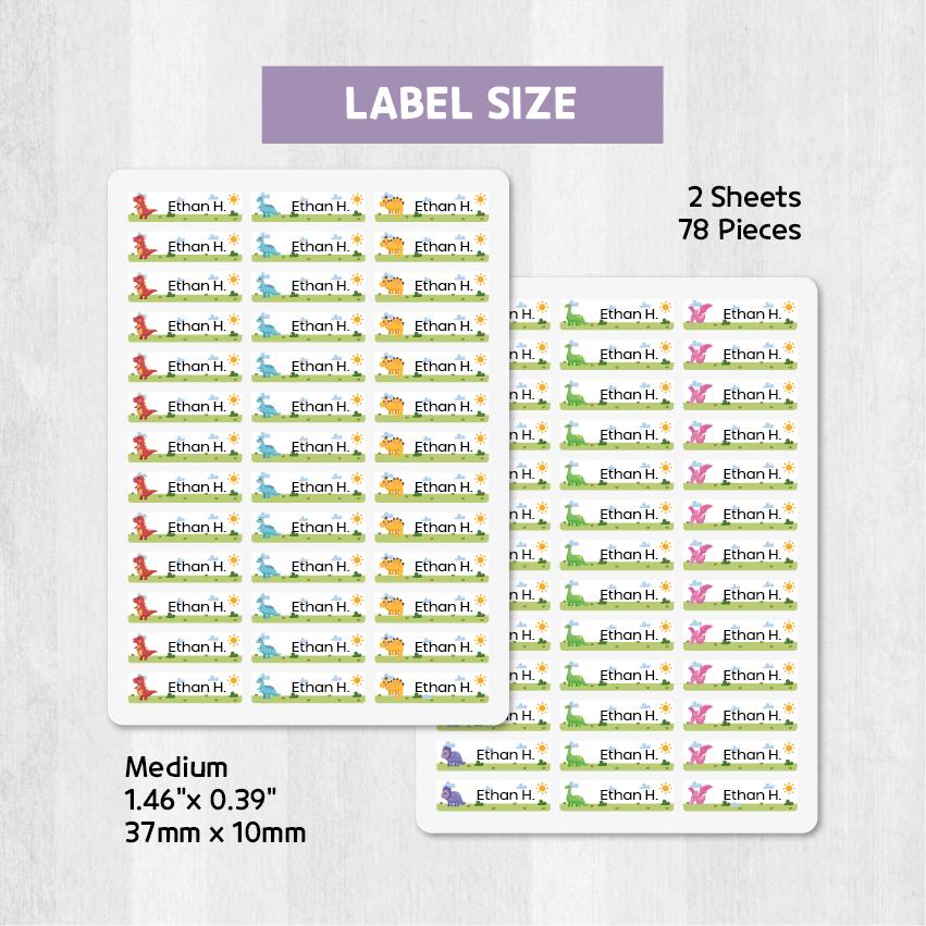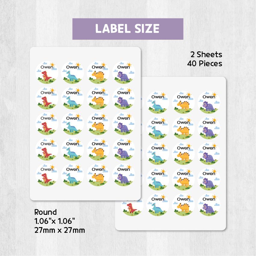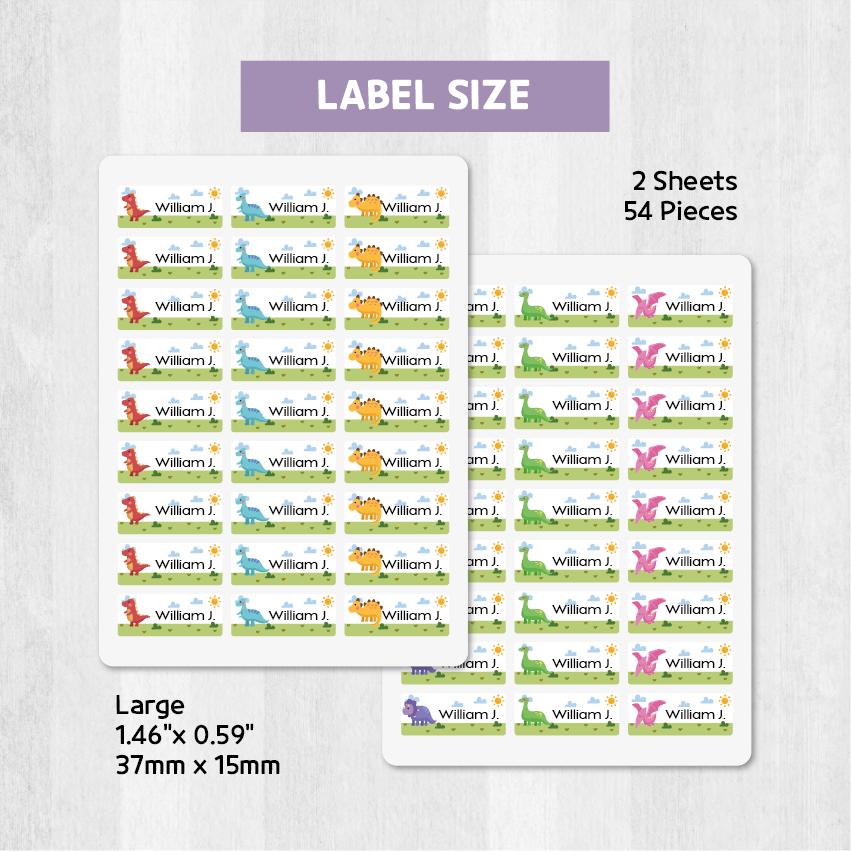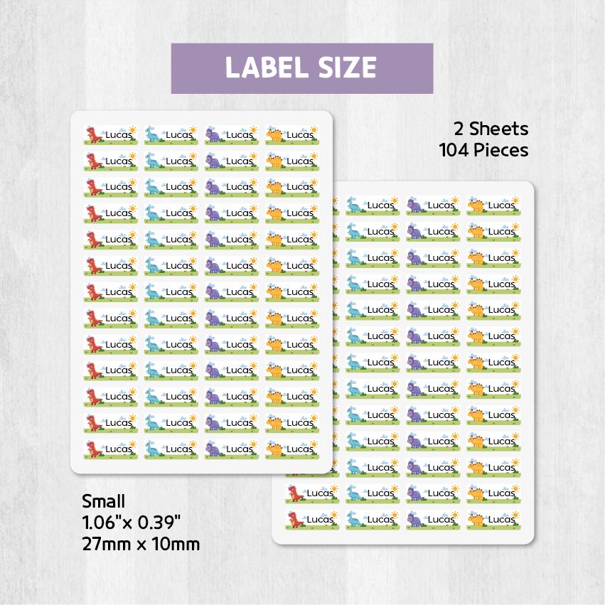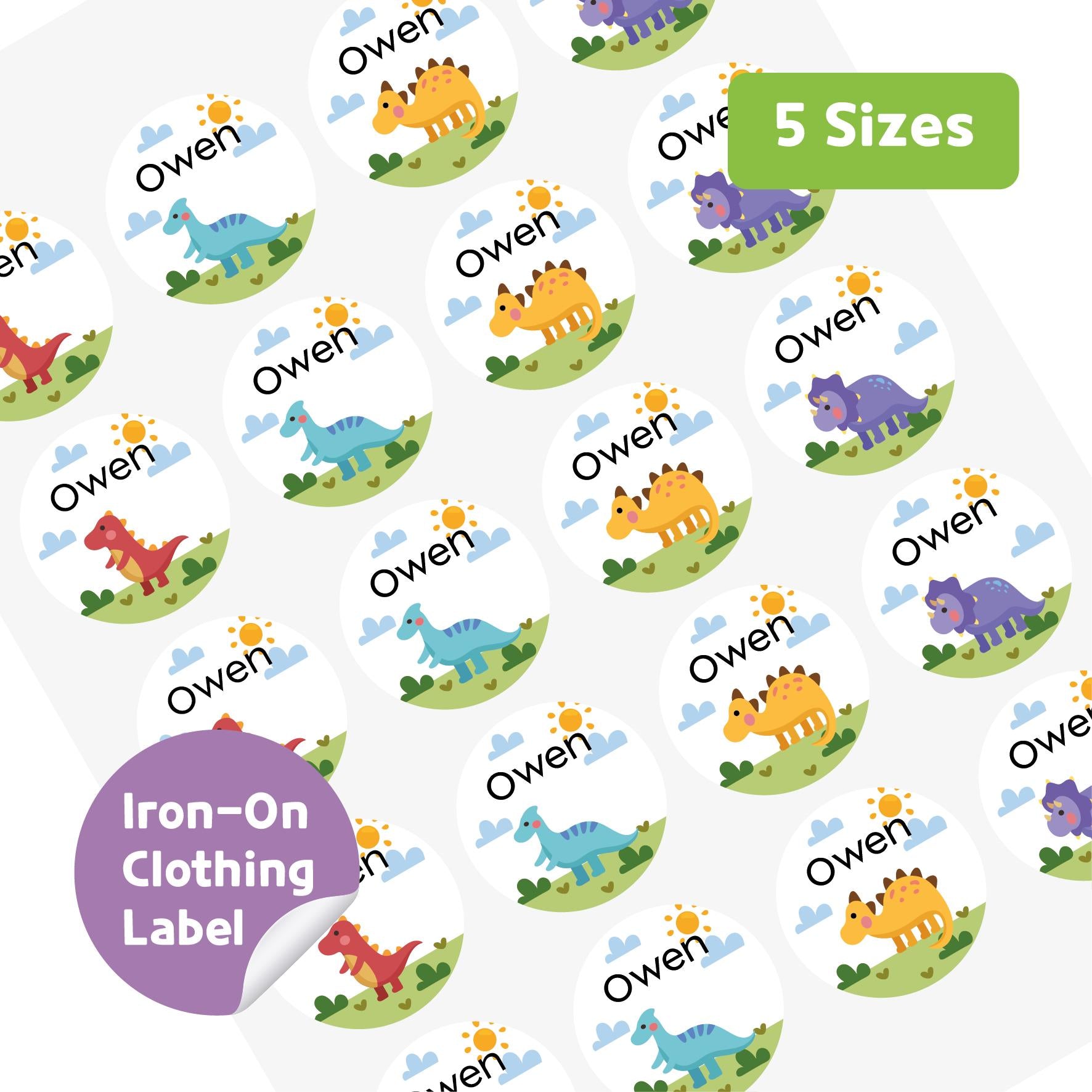Iron-On Clothing Name Label Stickers - Dino with Forest