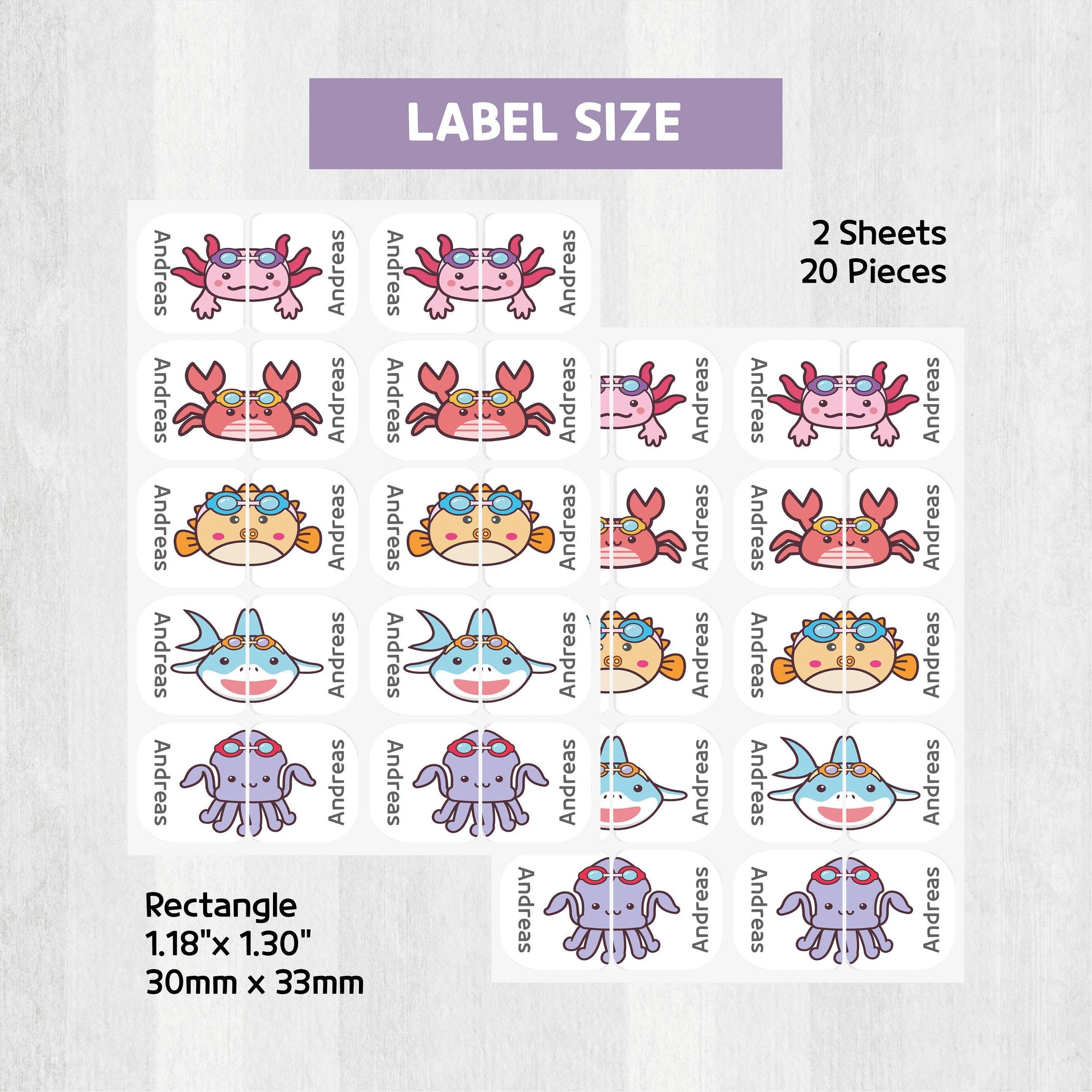 Left & Right Shoe Label Stickers - Sea Animal