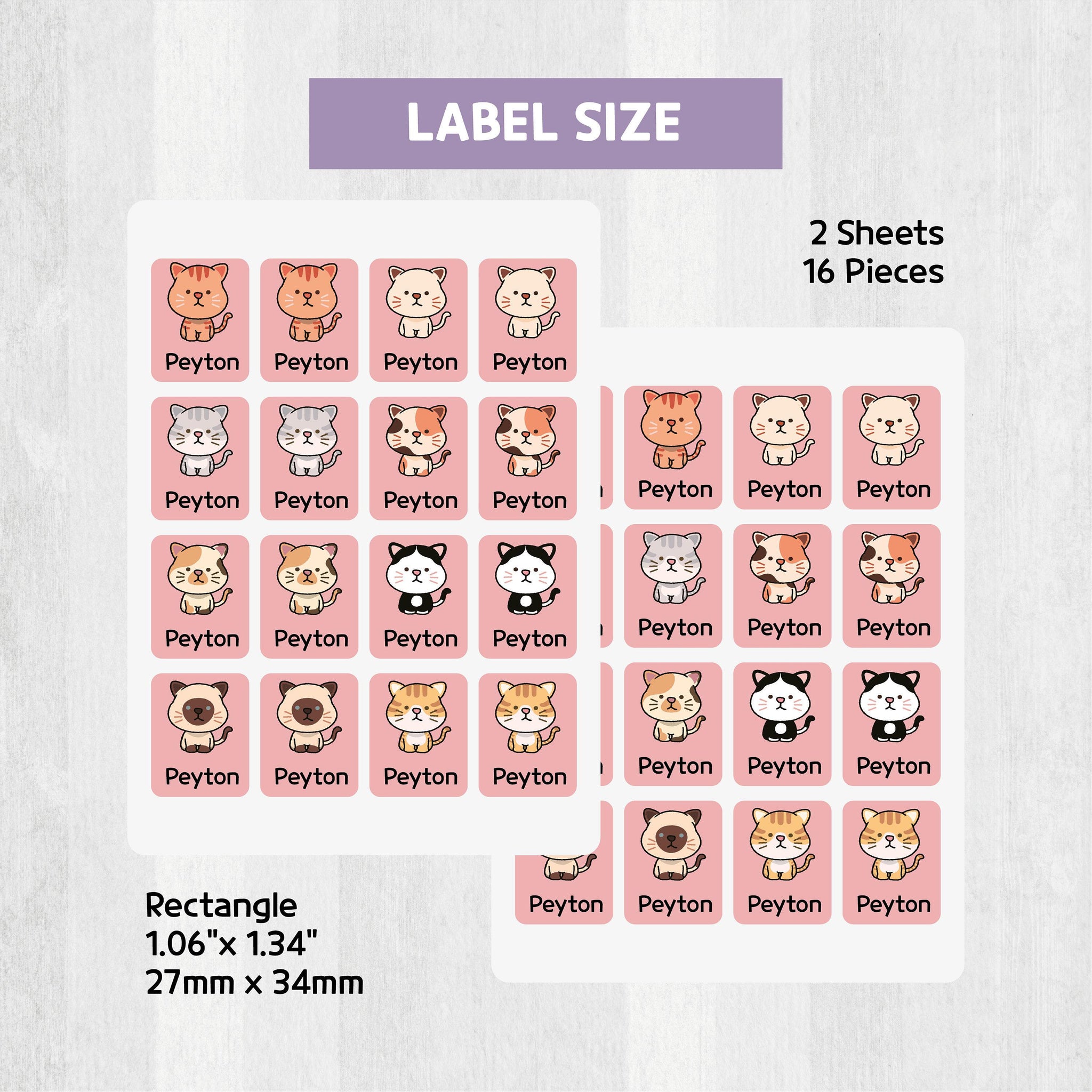 Rectangle Shoe Label Stickers - Cat