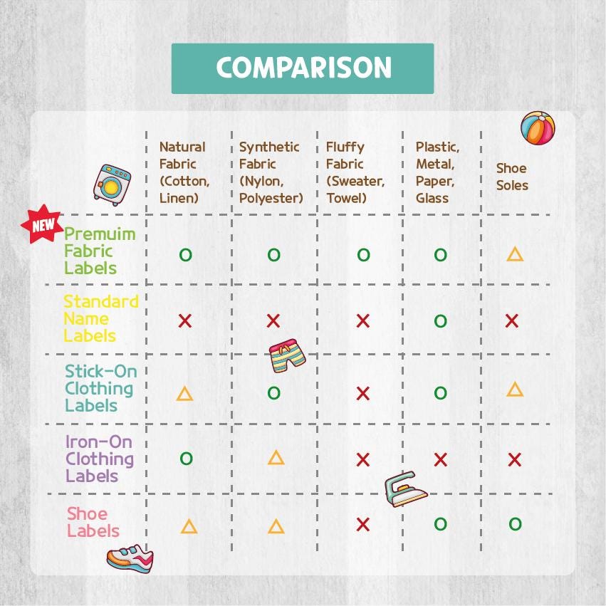 • Important: These labels are not for clothing. For fabric applications, please select our Premium Fabric Labels, Stick-On Clothing Labels, or Iron-On Clothing Labels.